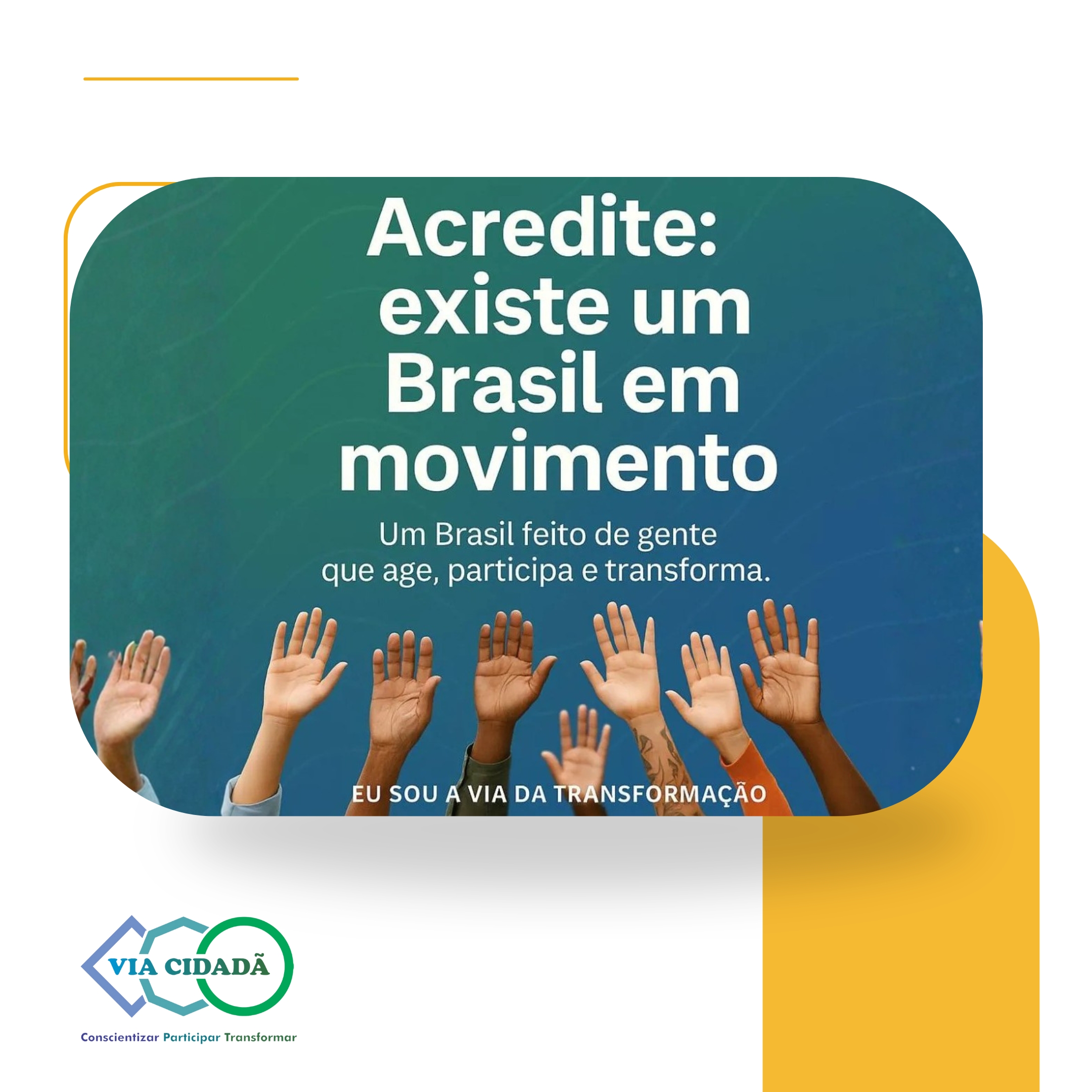 Motivados pelo atual ambiente de polarização ideológica e crises políticas e institucionais no Brasil, enxergamos a necessidade de conscientizar os cidadãos brasileiros de que a única via capaz de transformar nosso país somos nós, povo brasileiro, atuando de forma organizada e respeitando a nossa Constituição Federal.